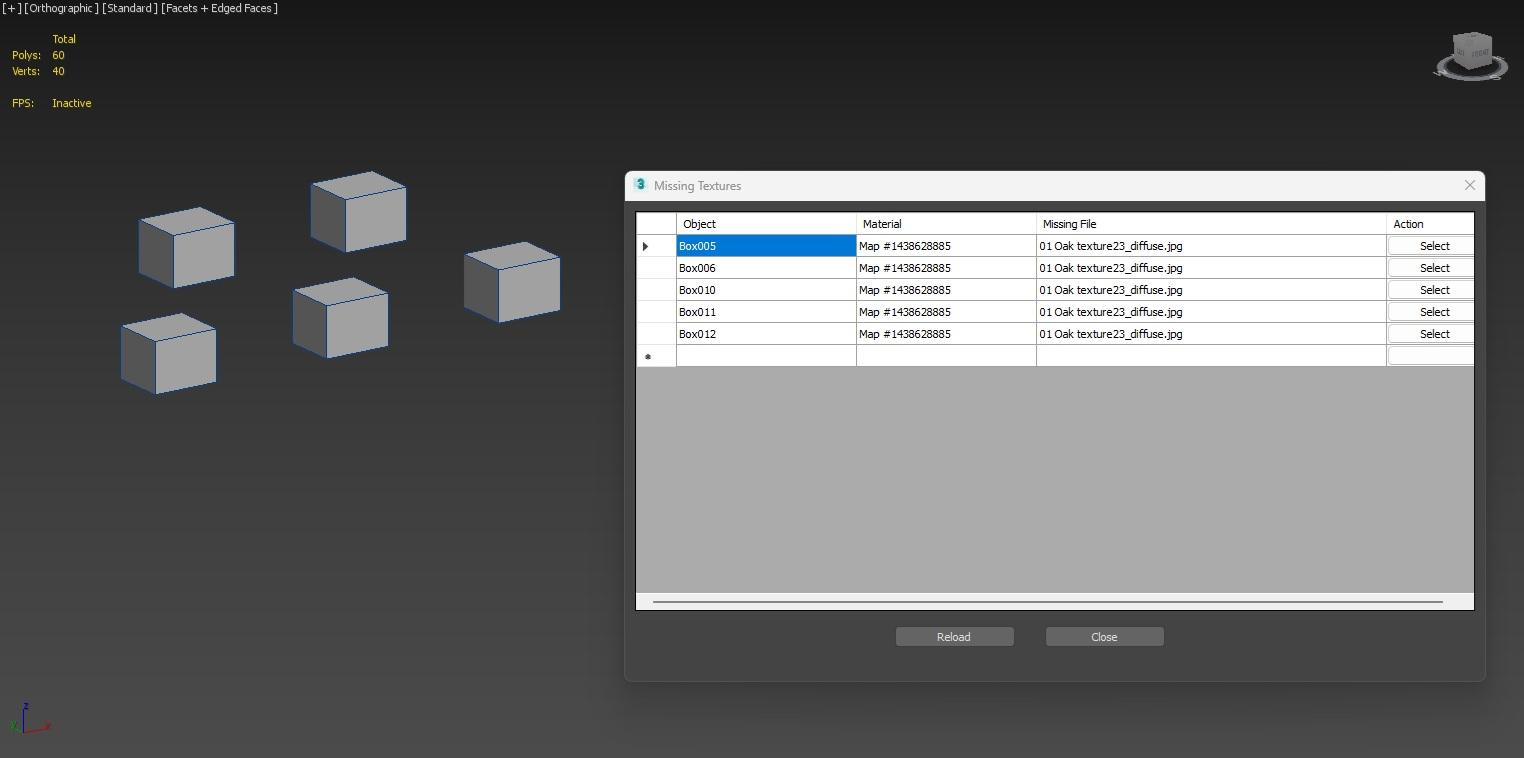 Click “Reload” to rescan the scene after fixing paths or relinking.